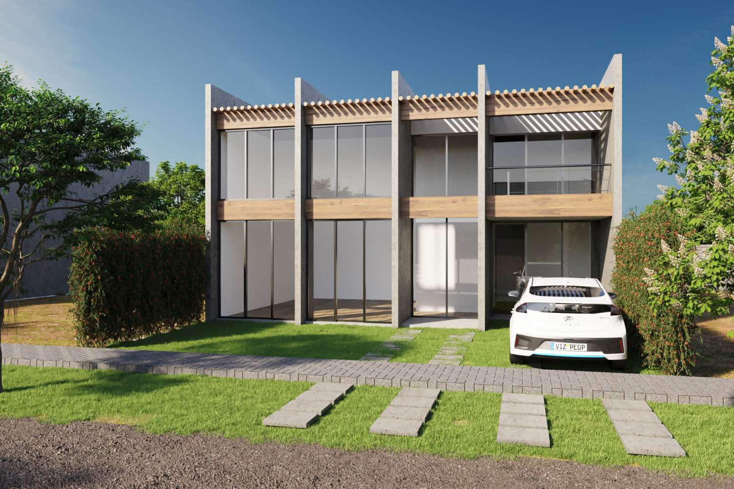 Ubicado en un terreno de 9 hectáreas en el distrito de Pachacutec, a 45 minutos al sur de la ciudad de Ica se encuentra “Edénica”, un condominio de lotes de 120, 160 y 200 m2 rodeados de vegetación. Nuestra propuesta urbana es dejar los aportes a un lado para lograr consolidar un macro lote que nos permita desarrollar un condominio privado. Este condominio tiene un anillo vehicular que remata en el Club House y un parque central. Además, se propuso que las vías internas sean de carácter peatonal. Como parte del encargo nos solicitaron desarrollar un modelo de casa para cada tamaño de lote. Por ello, se desarrolló una vivienda que parte de un módulo básico y según las necesidades del habitante pueda ir evolucionando y aumentando su área construida y espacios.